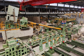 中冶賽迪立式錐形輥穿孔機(jī)廣泛應(yīng)用于各類無(wú)縫鋼管熱軋生產(chǎn)線,把實(shí)心管坯穿制成空心毛管,具有穿孔毛管表面質(zhì)量好、尺寸精度高,工模具消耗低,穿孔效率高、設(shè)備穩(wěn)定性高的突出優(yōu)點(diǎn),可穩(wěn)定高效穿制各種鋼種的管坯。